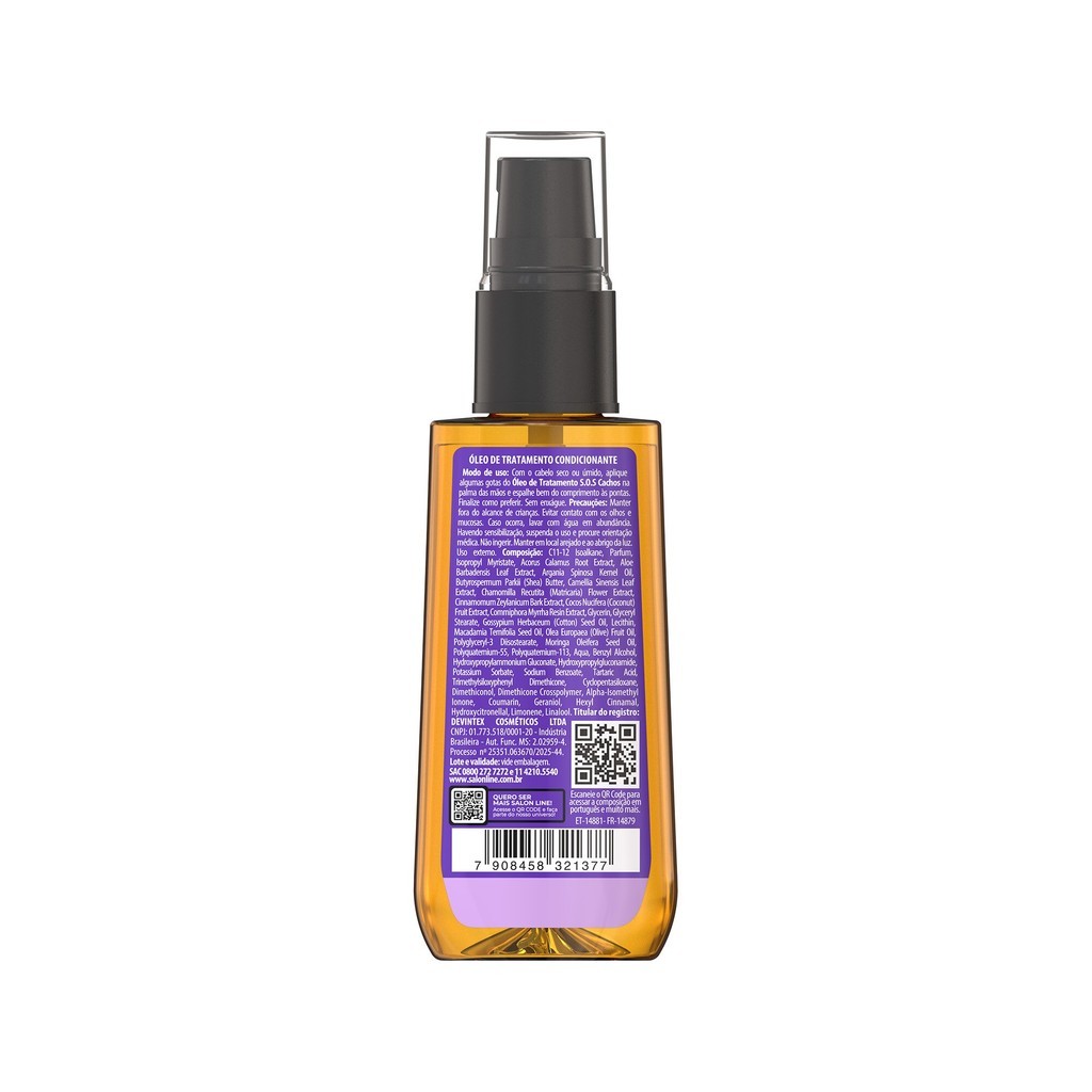 O Kit SOS Cachos com Super Óleos e Óleo de Coco oferece cuidados completos para os cachos. Com uma poderosa combinação de óleos e o benefício nutritivo do óleo de coco, proporciona hidratação intensa, nutrição profunda e definição dos cachos. <>INDICAÇÕES$& Para quais tipos de cabelo? Cabelos cacheados e crespos. Qual a indicação? Cabelos desidratados e desnutridos. Pode usar a partir de quantos anos? A partir de 12 anos. <>ATIVOS$& Quais os principais ativos? Óleo SOS Cachos Óleo de Coco 42ml O Óleo de Coco conta com manteiga e óleo de coco. Óleo Sos Cachos Super Óleos 42ml O Super Óleos conta com um mix de 12 óleos preciosos composto por óleo de argan, karité, algodão, coco, macadâmia, chá-verde, camomila, aloe, cálamo, mirra, oliva e canela. <>MODO DE USO$& Qual a melhor forma de usar? Com o cabelo seco ou úmido, aplique algumas gotas do Óleo na palma das mãos e espalhe bem do comprimento às pontas dos fios. Finalize como preferir. Sem enxágue. <>CARACTERÍSTICAS$& É produto vegano? Nenhum dos produtos é vegano. É liberado? Nenhum produto do kit é liberado.