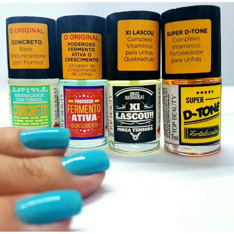 Kit Sos Unha Concreto + Poderoso + Dtone + Lascou Bases De Tratamento Top Beauty