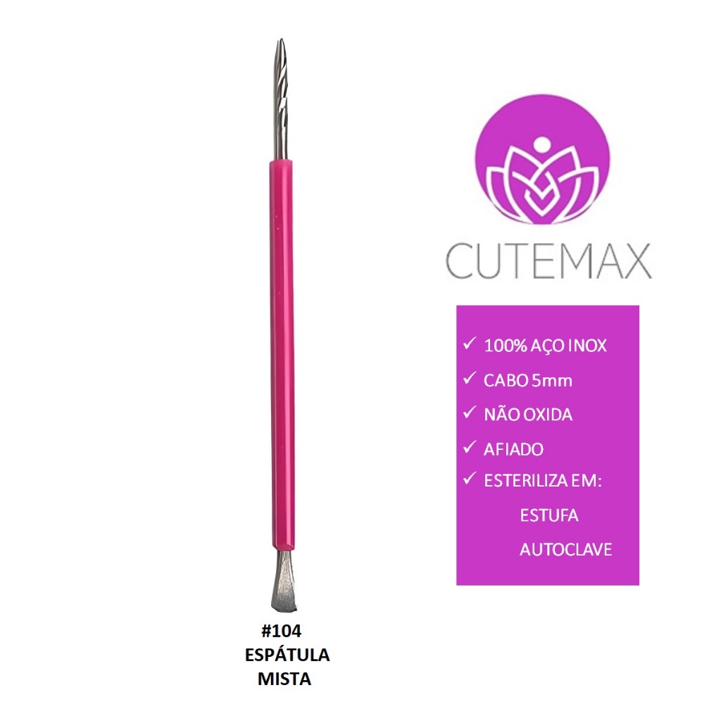 ITENS INCLUSOS: 1 Creme Removedor de Cutículas Repós 120g 1 Espátula Dupla Ref.104 em Aço Inox e Silicone Autoclavável Cutemax Espátula mista indispensável para profissionais de manicure, pedicure e podologia. Fabricada em aço inox cirúrgico (420) de alta durabilidade e qualidade, é esterilizável em autoclave e estufa. Revestida com silicone para proporcionar maior aderência nas mãos e maior controle, segurança e precisão nos trabalhos. Creme Removedor de Cutículas Repós Hidrata e amacia, facilitando a remoção das cutículas. Modo de usar: Espalhar pequena quantidade do produto nas cutículas, logo após proceder a remoção das cutículas. São indicados par uso em clínicas de estética e salões de beleza, e podem ser usados tanto no processo de hidratação dos pés, como para proteger os pés em bacias de pedicure de hidromassagem, promovendo uma proteção contra o contato direto das clientes com a bacia de hidromassagem, que é de uso comum.