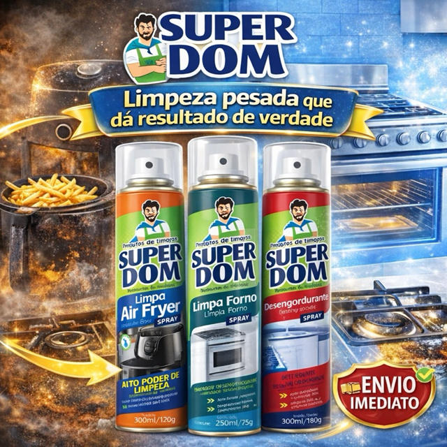 Kit Spray Limpa Air Fryer + Limpa Forno + Desengordurante Super Dom - Alto Poder De Limpeza