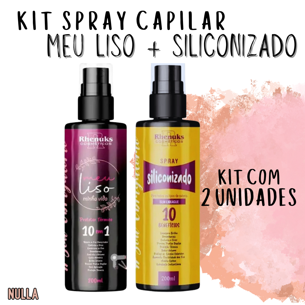 KIT Spray Protetor Térmico Capilar MEU LISO + SILICONIZADO Rhenuks 200ml
