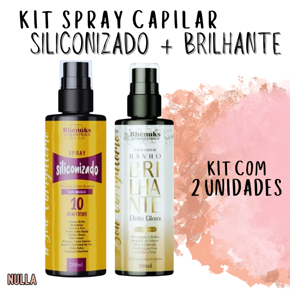 KIT Spray Protetor Térmico SILICONIZADO + BANHO BRILHANTE EFEITO GLOSS Rhenuks 200ml