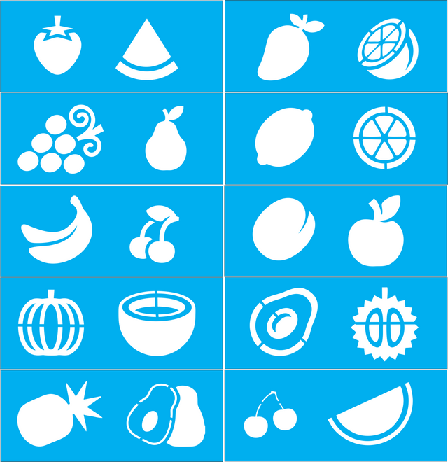 Kit Stencil 10 peças Frutas para pintura - Moldes Estêncil - Tamanho 17x7 cm