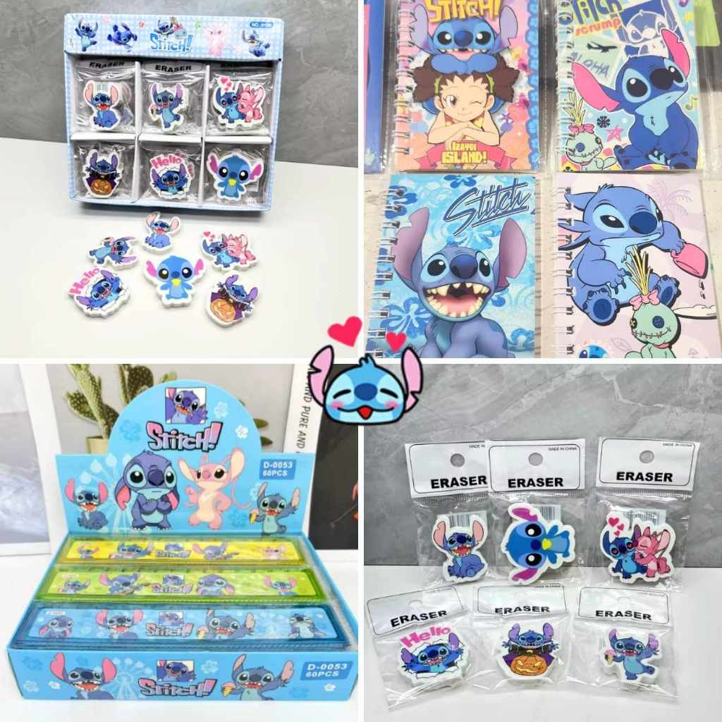 Kit Stitch Papelaria Fofa Kawaii Presente Criativo Para Menina Caneta Lápis Borracha Adesivo Caderninho