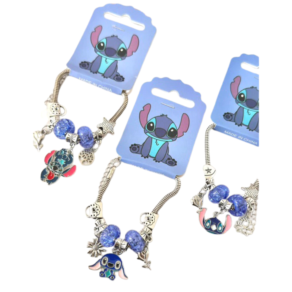 Kit Stitch Volta às Aulas - Caneta Esferográfica 10 Cores + Pulseira Berloques Prata Aço Inox