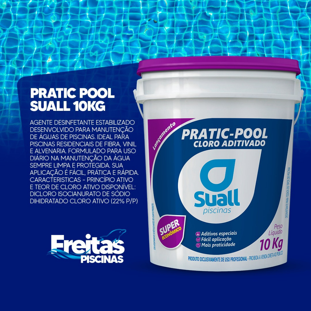 Cloro orgânico estabilizado para piscina, com 22% de produto ativo em sua composição, que possui agentes protetores contra a degradação do sol. Não deixa nenhum resíduo insolúvel que possa provocar deixar a água turva ou prejudicar o filtro. Pode ser usado nas dosagens recomendadas, sem restrições, em piscinas de fibra e vinil, pintura ou azulejos, sua eficácia é ideal para piscinas residenciais ou coletivas. DIFERENCIAIS –Produto muito eficaz para piscinas residenciais e institucionais; -Possui na sua constituição substância nobres; -Alta Solubilidade. Sulfato de Aluminio O decantador de impurezas é um produto essencial para quem possui piscinas em casa ou em estabelecimentos comerciais. O sulfato de alumínio é um poderoso agente que age rapidamente, apresentando alta performance na aglomeração da sujeira, tornando mais fácil o trabalho de limpeza e aspiração. Para garantir o melhor resultado, é importante seguir a dosagem indicada de 40 gramas para cada 1m³ de água da piscina. Após a aplicação, é recomendado aguardar cerca de uma hora para adicionar o Suall Elevador de pH, seja em pó ou líquido, de acordo com as instruções de aplicação do produto. Além de facilitar a limpeza, o decantador de impurezas também ajuda na redução do pH da água da piscina. Isso é fundamental para manter a qualidade da água e a saúde dos banhistas. Barrilha Para elevar o PH, adicione a quantidade do produto em um balde com água, agitando bem e espalhando em toda a volta da piscina. Em seguida ligue o filtro na posição “recircular” deixando agitar por algumas horas. Lembre-se sempre que o controle do pH em piscinas é um processo lento e contínuo. Verifique o valor do pH no dia seguinte e se necessário, repita a operação. Kit Contem: Cloro 10kg Suall 2 Sulfato de aluminio 2 Barrilha