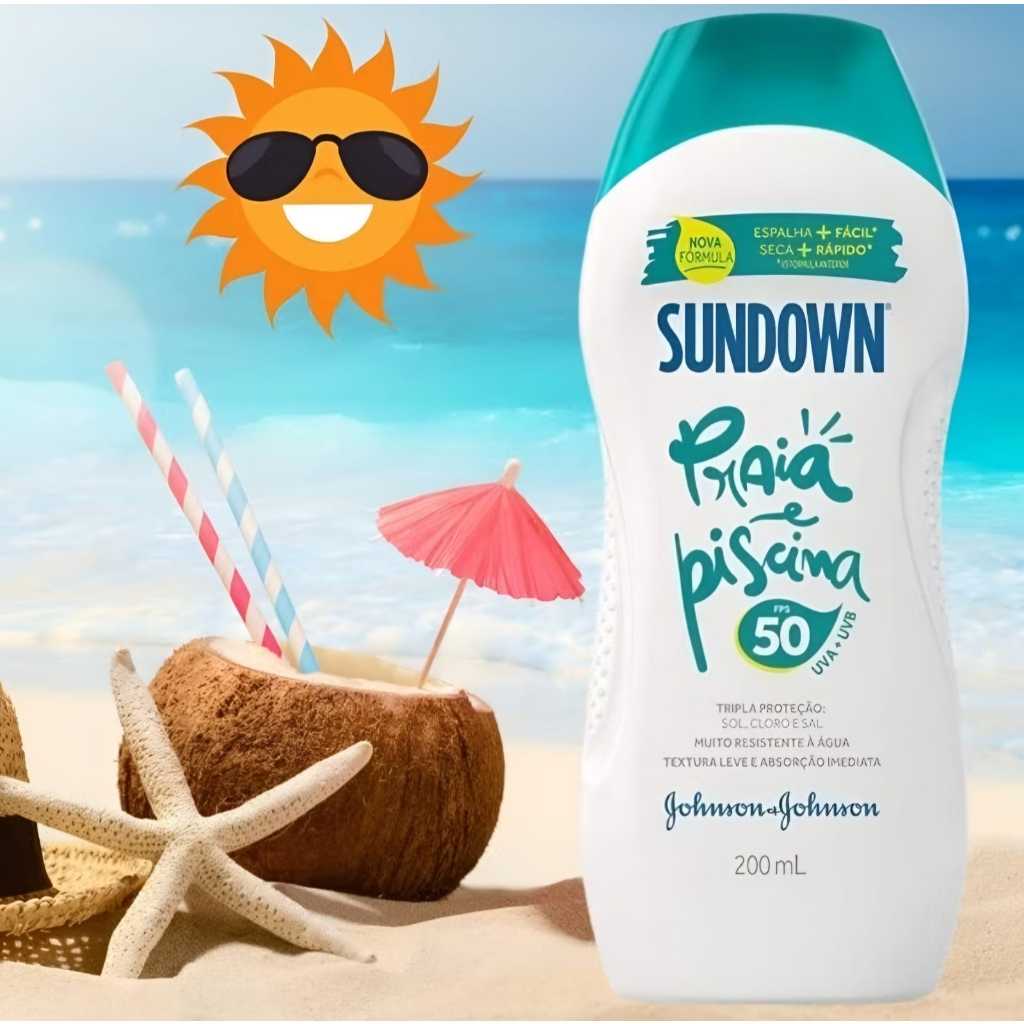 PROTEÇÃO COMPLETA PARA CURTIR AO AR LIVRE! O Protetor Solar Sundown Praia e Piscina FPS 50 com tripla proteção, ajuda a proteger a pele de elementos agressores como o sol, o cloro e a água salgada do mar. Oferece proteção imediata UVA + UVB, protegendo a pele de queimaduras solares dentro e fora d'água. É três vezes mais resistente à água e ao suor e seguro para usar em toda a família! Hidrate sua pele com o Gel Pós Sol SUNDOWN®, que possui alto poder hidratante e antioxidante, com 95% de Aloe Vera em sua composição. Equilibra, refresca e recondiciona a pele após a exposição solar, proporcionando sensação de alívio. O Kit contém 01 Unidade Gel Pós Sol Sundown 140g 01 Unidade Protetor Solar Sundown Fps50 200ml 01 Unidade Protetor Solar Sundown Fps50 120ml