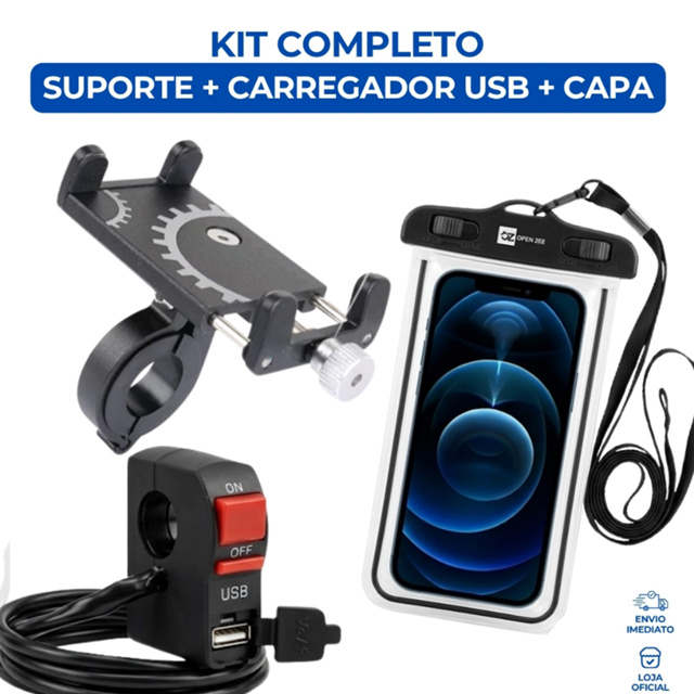 | Kit Suporte Celular GPS Alumínio Capa Protetora USB Botão ON/OFF Pa... este produto | R$ 17,90 | 90% | 5.0/5 | — |