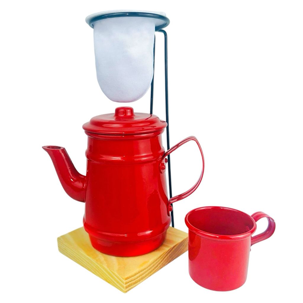 Kit Suporte Coador de Café Base Madeira + Bule + Refil Escolha A Variação