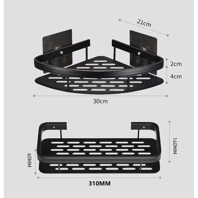 Montado na parede: Não há necessidade de fazer furos na parede, a cola é muito forte e fácil de instalar Material do alumínio do espaço:、durável não oxidante do、resistente à capacidade forte do carga- rolamento do da umidade Single Tier: Fornece amplo espaço de armazenamento para o seu banheiro. Estante de canto: usa espaço não utilizado em seu banheiro. Como instalar: 1. Limpe a parede e mantenha-a seca. 2. Aplique o adesivo sem unhas na prateleira. 3. Fixe os adesivos auxiliares. 4. Pressione firmemente na parede por 30 segundos. 5. Aguarde 24 horas antes de usar, para garantir a máxima adesão. Material de alumínio espacial torna o produto mais resistente e durável, não é fácil de danificar e idade Suporte triangular: 21*21*5,5cm, Suporte retangular: 30.5*13*5,5 cm