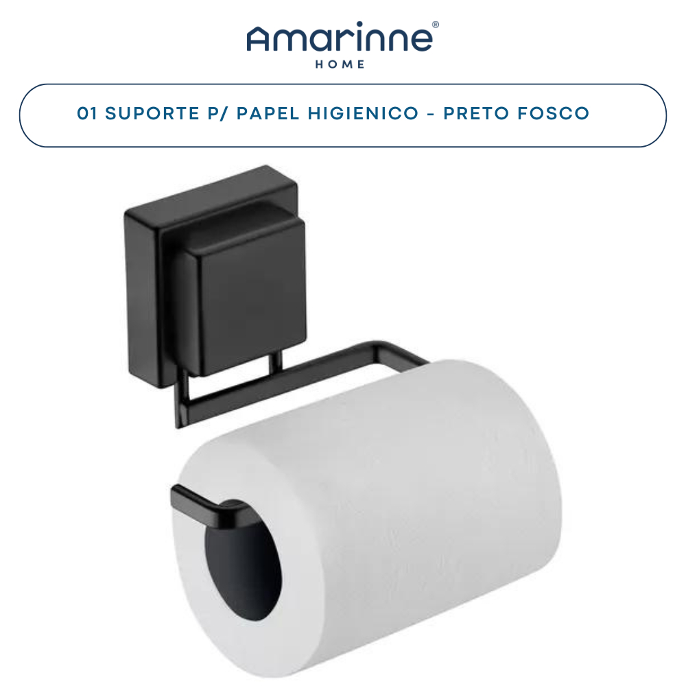 ****ATENÇÃO! Produtos com Ventosa são INDICADOS e tem 100% de eficiência em superfícies "perfeitamente LISAS e BRILHANTES". NÃO SÃO INDICADOS a sua instalação em locais com acabamento acetinado (fosco), porosos (mármores, granitos), com texturas, paredes de alvenaria, paredes pintadas, papel de parede, ou com desenhos em alto/baixo relevo.**** SOBRE O PRODUTO As toalhas de mãos e rosto ficam ainda mais destacadas em um toalheiro bonito e elegante. Suporte para Papel Higiênico fabricado em aço carbono com acabamento fosco. Possui instalação prática, rápida e sem sujeira, graças ao sistema de fixação com ventosas Future. Pode ser fixado e removido com facilidade. O aço Piatina (em formato achatado) dá o toque especial que o banheiro e o lavabo merecem. Acabamento liso e fosco. A pintura a pó aplicada na peça garante uma excelente cobertura protetiva contra corrosão e alta resistência ao impacto. Itens inclusos: 1 Toalheiro com Ventosa + 1 Porta Papel Higienico INSTALAÇÃO - Correto: superfícies lisas, brilhantes e totalmente planas como vidros, espelhos, azulejos, cerâmicas não porosa, pinturas lisas e brilhantes (epóxil) e laminados.- Incorreto: superfícies curvas, foscas ou porosas como papel de parede, madeira, parede de cimento, mármore, granito, etc. RECOMENDAÇÕES - Remover regularmente (a cada 3 meses) e reaplicar conforme instruções de montagem.- Nunca utilize este produto com pesos superiores ao indicado na embalagem.- Não utilize este produto para acomodar produtos frágeis e de valor.- Não use chaves, facas e objetos pontiagudos para retirar o produto da superfície. ESPECIFICAÇÕES DOS PRODUTOS: - Máteria Prima: Aço Carbono + Plástico + Borracha- Cor/Acabamento: Preto Fosco TOALHEIRO MEDIDAS - Profundidade: 7,5cm- Lagura: 25cm- Altura: 8cm- Peso: 0,20kg - Capacidade: 3kg PORTA PAPEL HIGIENICO MEDIDAS - Profundidade: 9,5cm- Lagura: 12,5cm- Altura: 8cm- Peso: 0,14kg - Capacidade: 2kg