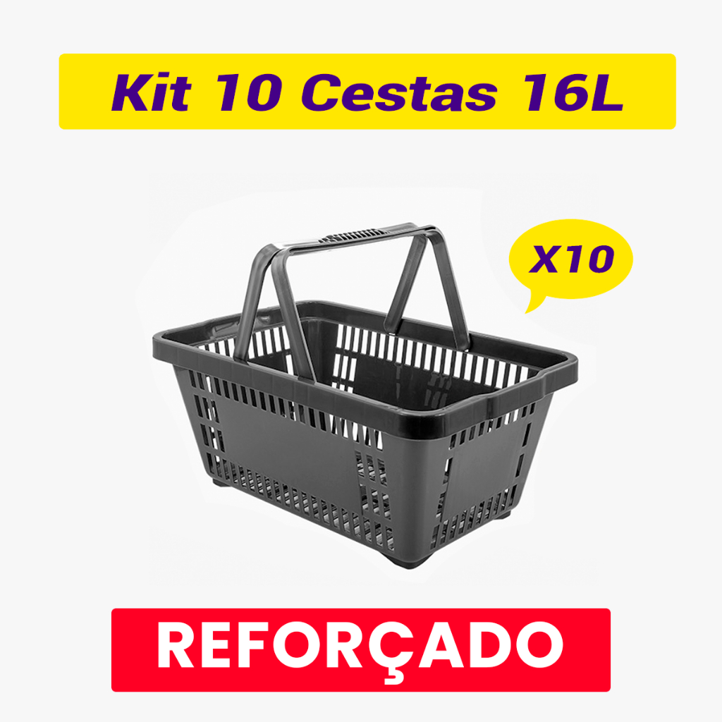 Kit Suporte Porta Cesta E 10 Cestinhas Compras Mercado Lojas Preta