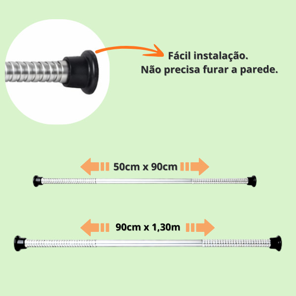 Kit Cortina de Box com Visor Transparente + Varão Extensível em Alumínio Transforme seu banheiro em minutos com um kit completo que une design moderno, praticidade e resistência. A cortina com visor transparente garante mais luz, privacidade e elegância, enquanto o varão extensível em alumínio oferece instalação fácil, sem furar a parede. Ideal para quem quer um banheiro mais bonito, organizado e funcional, sem reformas. * CORTINA DE BOX TRANSPARENTE - Visual moderno e sofisticado - Visor transparente com estampas leves (mais luz e privacidade) - Tratamento antimofo, ideal para ambientes úmidos - Fácil instalação, acompanha ganchos de qualidade - Protege contra respingos e mantém o banheiro seco * VARÃO EXTENSIVEL DE ALUMINIO - Instalação sem furos (sistema de pressão) - Não enferruja, não amassa e não descasca - Leve, resistente e durável - Ajustável para diferentes tamanhos de box - Montagem rápida e segura ** VANTAGENS DO KIT ** - Sem furar a parede - Instalação rápida e sem sujeira - Alta durabilidade - Acabamento moderno - Kit completo pronto para uso Solução prática para banheiro, box, lavanderia ou divisórias. * Como Instalar o Varão (Simples e Rápido) - Gire as hastes para aumentar o comprimento do extensor; - Posicione o varão na altura desejada e estenda até encostar nas paredes; - Gire novamente até ficar firme e bem preso. Características Técnicas CORTINA DE BOX Tamanho: 1,38 m (L) x 1,98 m (A) Material: 100% PVC Visor transparente com estampa VARÃO EXTENSÍVEL DE ALUMINIO ** Opção 1: Extensor fechado: 50 cm Extensor aberto: 90 cm ** Opção 2: Extensor fechado: 90 cm Extensor aberto: 1,30 m Material: 100% alumínio O KIT CONTÉM: 1 Cortina de Box com Visor e 1 Varão extensível ** Garanta agora seu Kit Cortina + Varão e deixe seu banheiro mais bonito, prático e organizado! - PERGUNTAS FREQUANTES (FAQ) - O varão precisa furar a parede? Não. Ele funciona por pressão, sem furadeira. - Qual o tamanho do varão? Ajustável * 50cm x 90cm * 90cm x 1,30m - A cortina já vem no kit? Sim, o kit acompanha cortina e ganchos. Serve em qualquer box? - Sim, desde que esteja dentro da medida ajustável. - O varão é resistente? Sim, feito com material firme e durável. - A cortina é impermeável? Ajuda a conter respingos de água (uso comum de box). - É fácil de instalar? Sim, instalação rápida em poucos minutos. - Posso usar em outros lugares? Sim, pode ser usado em banheiro, lavanderia ou divisórias. ** Pedidos seguros e despachados em até 24h úteis! Ficou com alguma dúvida? Fale com a gente pelo chat – o atendimento é rápido e descomplicado! Aproveite o desconto no frete para compras acima de R$19,00! Resgate seu cupom e leve produtos de qualidade com apenas um clique. Sua opinião é muito importante! Conte como foi sua experiência e nos ajude a melhorar cada vez mais. Agradecemos por confiar na nossa loja. Boas compras!