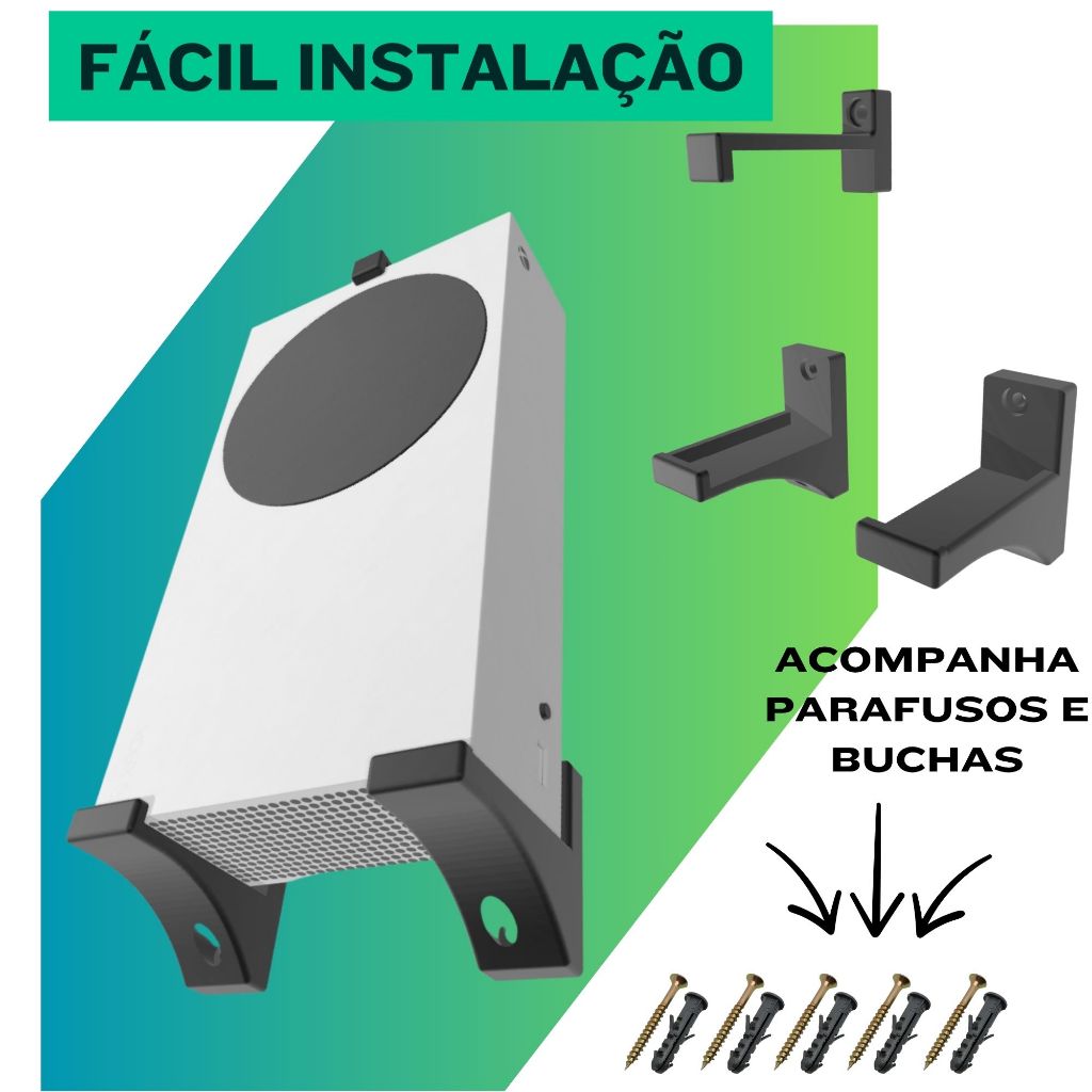 🎮 KIT SUPORTE XBOX – ORGANIZE SEU SETUP COMO UM GAMER PRO Transforme seu espaço gamer com um visual organizado, moderno e funcional. ✔ Compatível com Xbox S ✔ Suporte para console + controles ✔ Instalação simples e rápida ✔ Material resistente (impressão 3D de alta qualidade) ✔ Design pensado para ventilação e segurança 🔥 Ideal para: Deixar seu setup mais bonito Economizar espaço Proteger seu console 📦 Conteúdo: Suporte para console Suporte(s) para controle Parafusos e buchas ⚡ Instalação fácil – pronto em minutos!