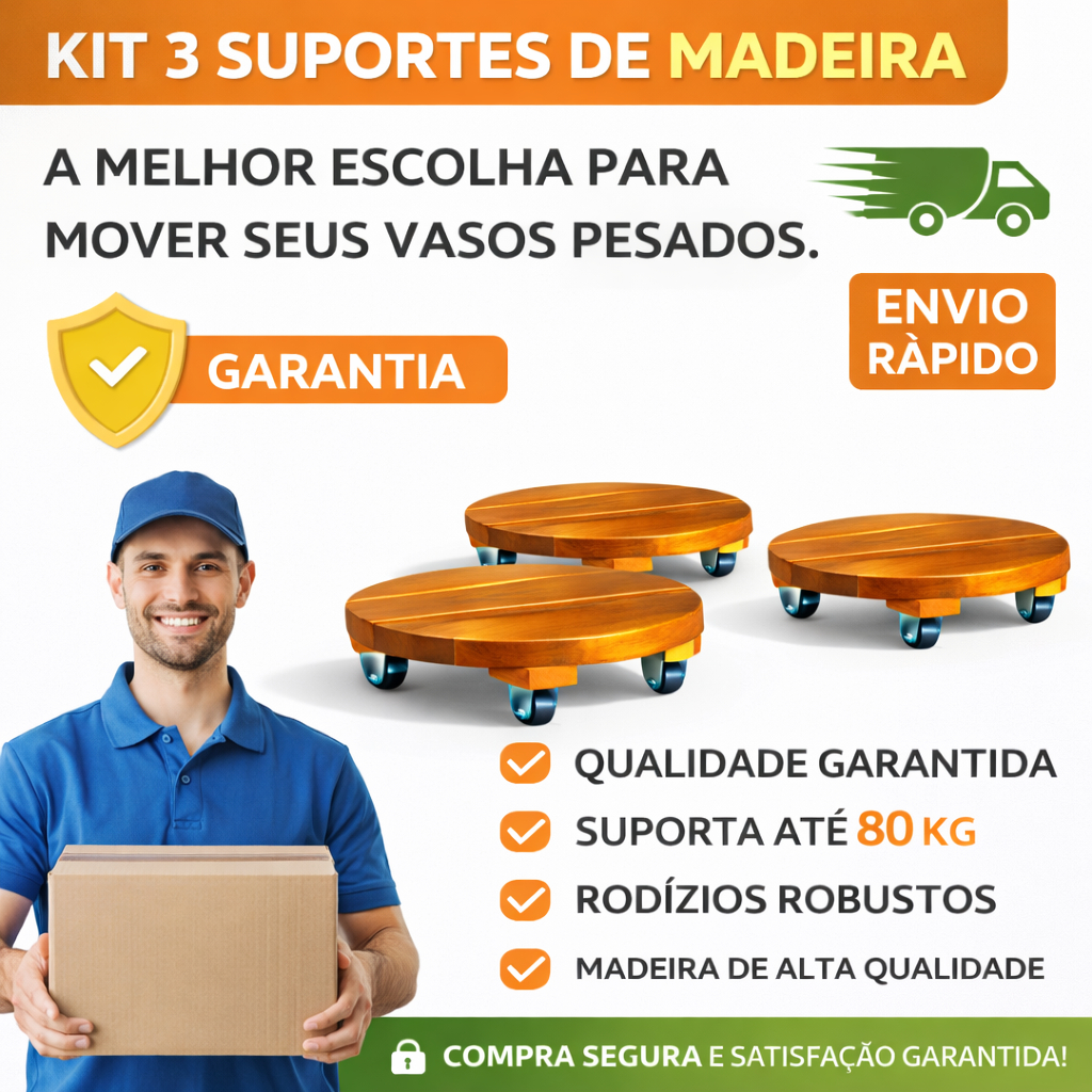 Transforme a organização do seu jardim ou sala com o Suporte de Madeira Redondo com Rodinhas. Unindo estética rústica e funcionalidade, este suporte é a solução definitiva para mover seus vasos pesados com total leveza, protegendo seu piso contra riscos e umidade. Principais Benefícios: Mobilidade Sem Esforço: Equipado com rodinhas resistentes que permitem movimentar suas plantas para limpeza ou busca de luz solar com facilidade. Design Rústico e Elegante: O acabamento em ripas de tom amadeirado médio adiciona um toque de sofisticação natural a qualquer ambiente. Alta Durabilidade: Base reforçada projetada para suportar o peso de vasos grandes com estabilidade e segurança. Versatilidade de Uso: Perfeito tanto para áreas internas, como salas e escritórios, quanto para áreas externas, como varandas e quintais. Especificações Técnicas: ENVIAMOS COM 1 UNIDADE / COM DUAS UNIDADE / E COM 3 UNIDADE Material: Madeira de alta qualidade com acabamento Dimensões: 30cm x 30cm Formato: Redondo Rodízios: Base com rodinhas embutidas Por que escolher este produto: Este suporte foi desenvolvido para quem não abre mão da praticidade no dia a dia. Além de facilitar a faxina embaixo das plantas, ele evita o contato direto do vaso com o chão, prevenindo manchas de água e garantindo que sua decoração permaneça impecável por muito mais tempo. É o acessório indispensável para colecionadores de plantas e amantes de decoração. Garanta já o seu e leve mais praticidade e beleza para o seu lar!