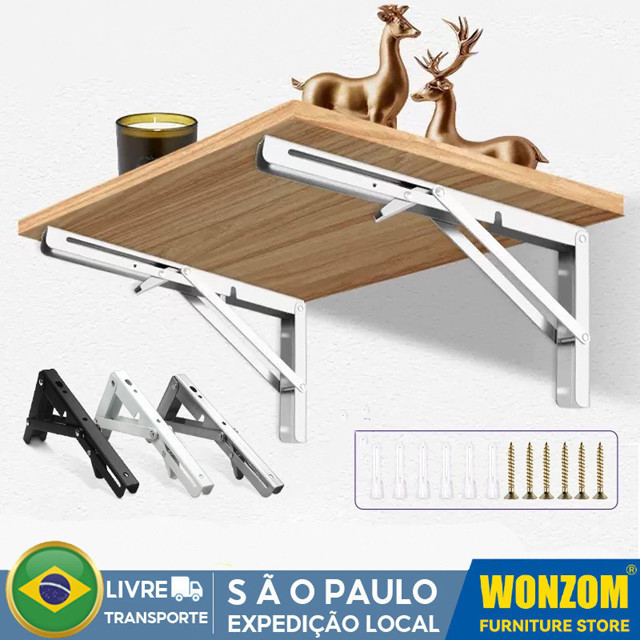 Kit Suportes Mão Francesa Retrátil Dobrável Cantoneiras Mesa Balcão 20cm 25cm 30cm 35cm 40cm ou 45cm