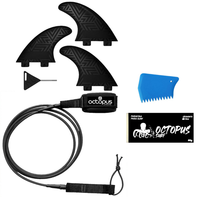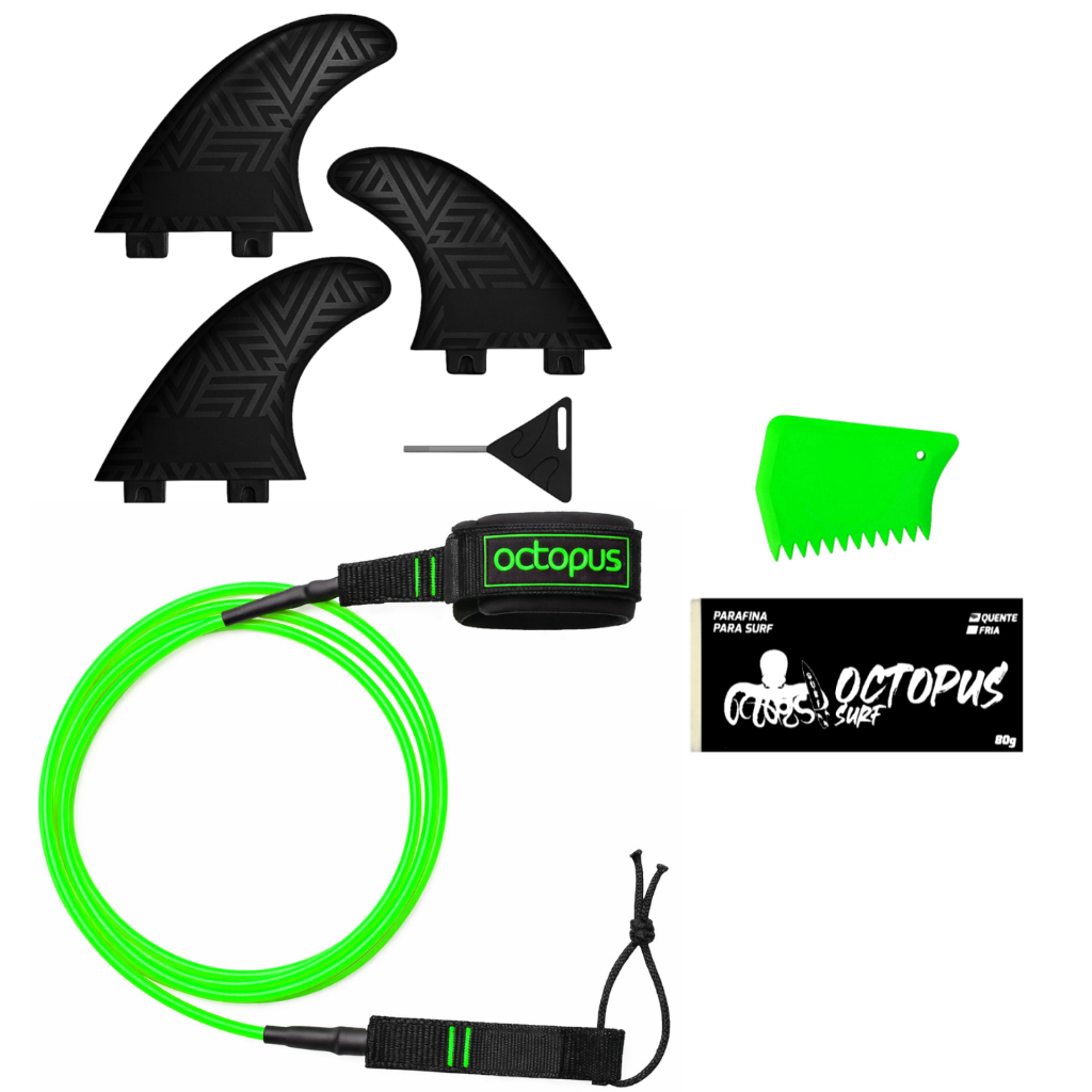 Kit Surf Leash Strep Competição 6´ pés + Jogo de Quilhas + Chave + Parafina Surf + Raspador