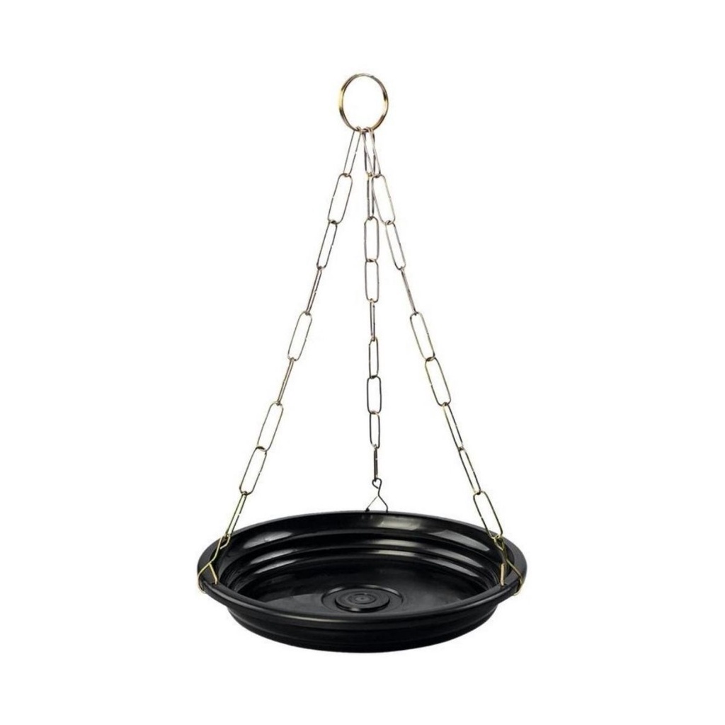 Kit Suspenso p/ Pendurar Vasos e Plantas - Prato Redondo Preto N° 4 e Corrente De Aço Para Vaso 64cm