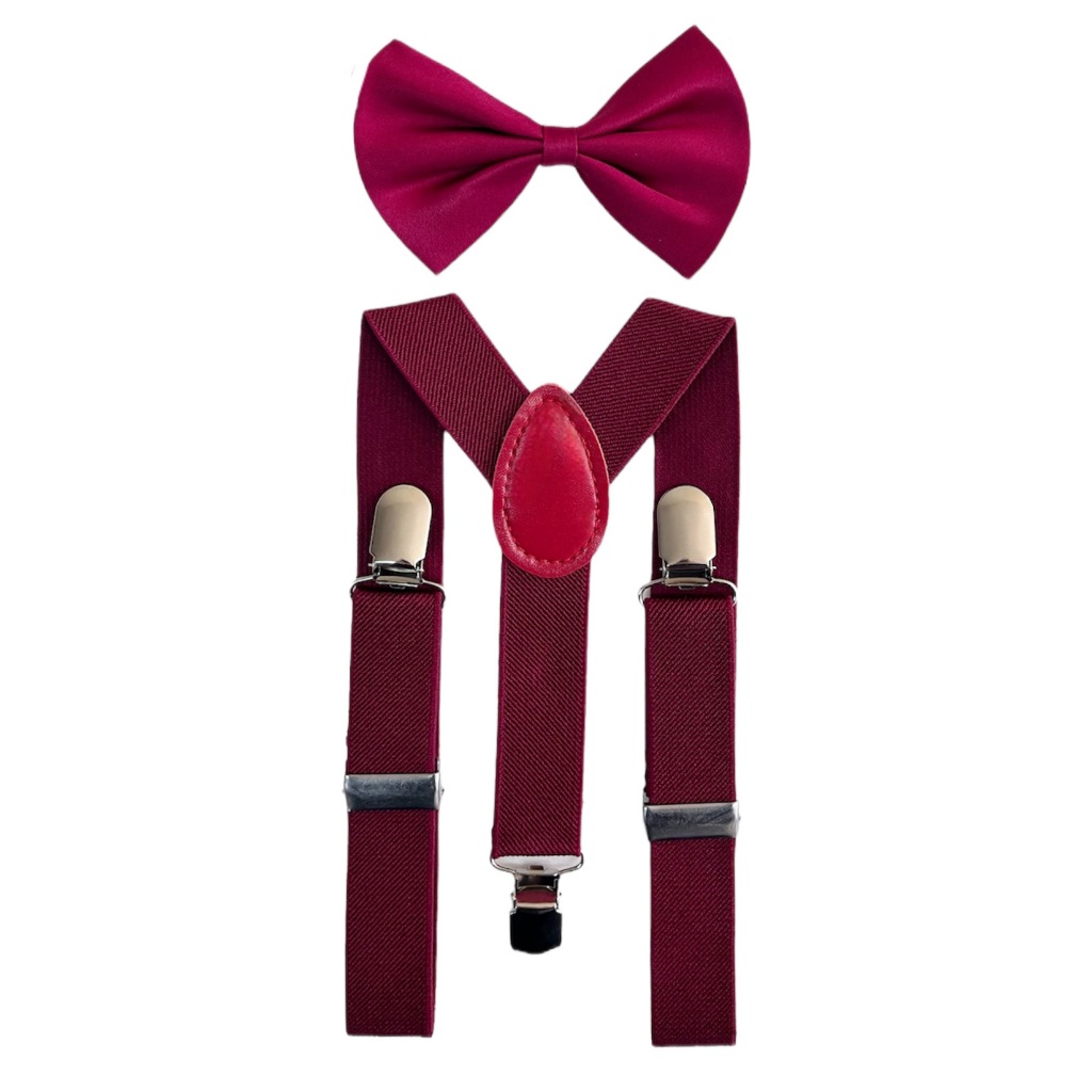 Kit Suspensório e Gravata Borboleta Cor Vinho Infantil Para Crianças Regulável Festa Formatura Casamento