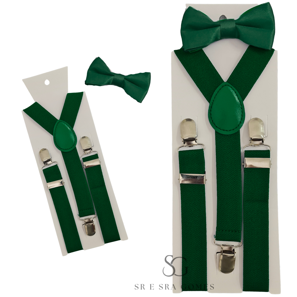 Kit Suspensório Verde Musgo + Gravata Borboleta Infantil