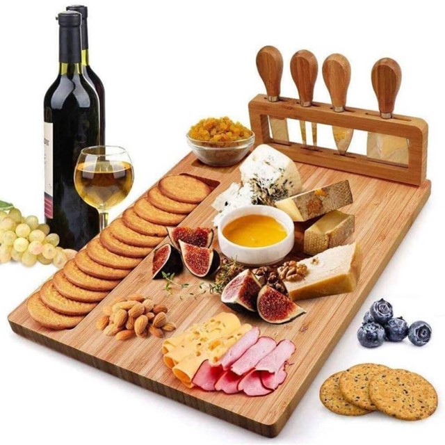 Kit Tábua De Frios Queijo Petisqueira Em Bambu Espátulas 04 Peças