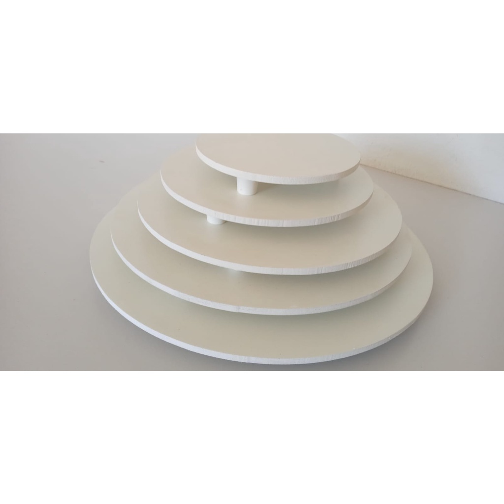 Kit Tabuleiro Redondo Para Bolo Com Pezinho Face Branca 6 Mm 5 Unidades Diametro De 15,20,25,30,35
