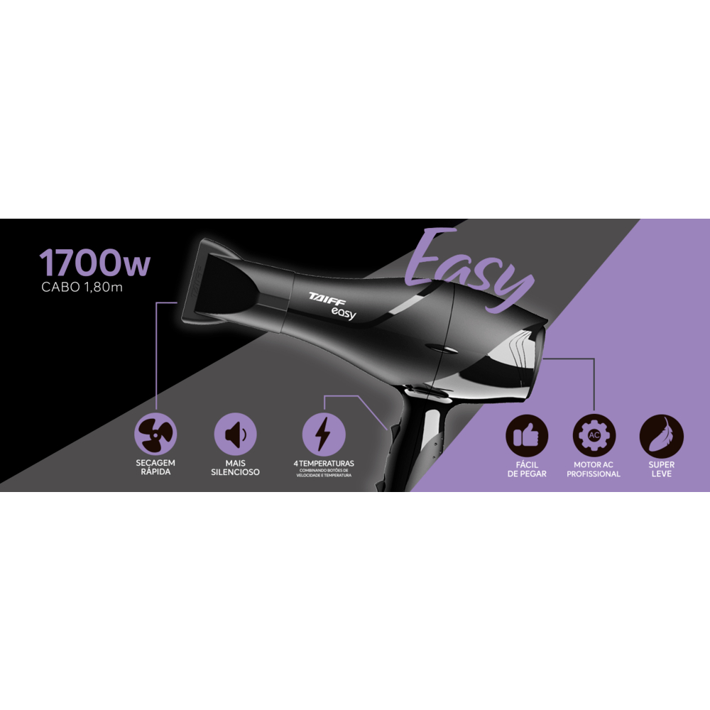 Kit Taiff Secador Easy 1700W + Prancha Taiff Cerâmica 180ºC 127V ou 220V