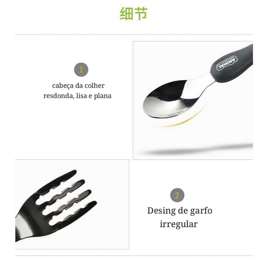 Kit Talher COLHER GARFO COM ESTOJO Infantil CABO SILICONE Com Inox 304