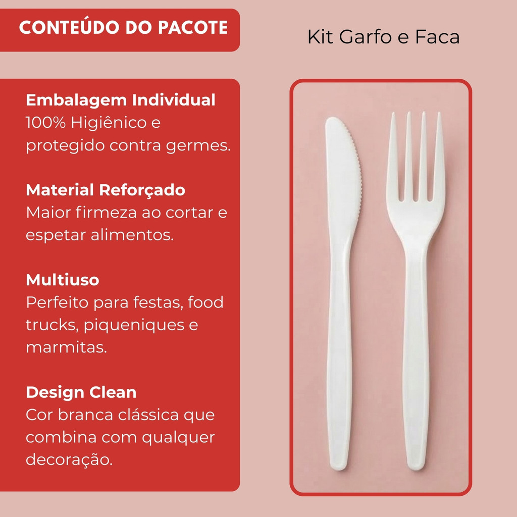 Kit Talher Descartável Garfo e Faca Reforçado 100un para Festa e Eventos - Branco