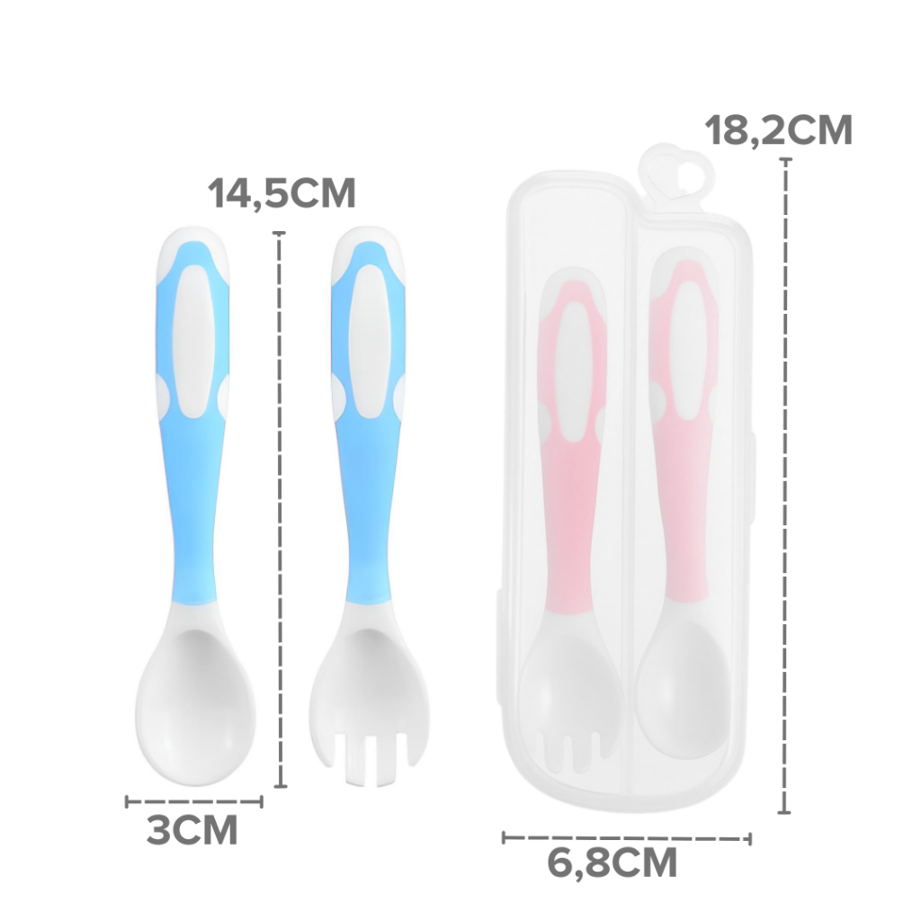 Kit Talher Infantil Bebe Dobrável Silicone/Plástico com Estojo Colher e Garfo Ergonômico - ColorBaby