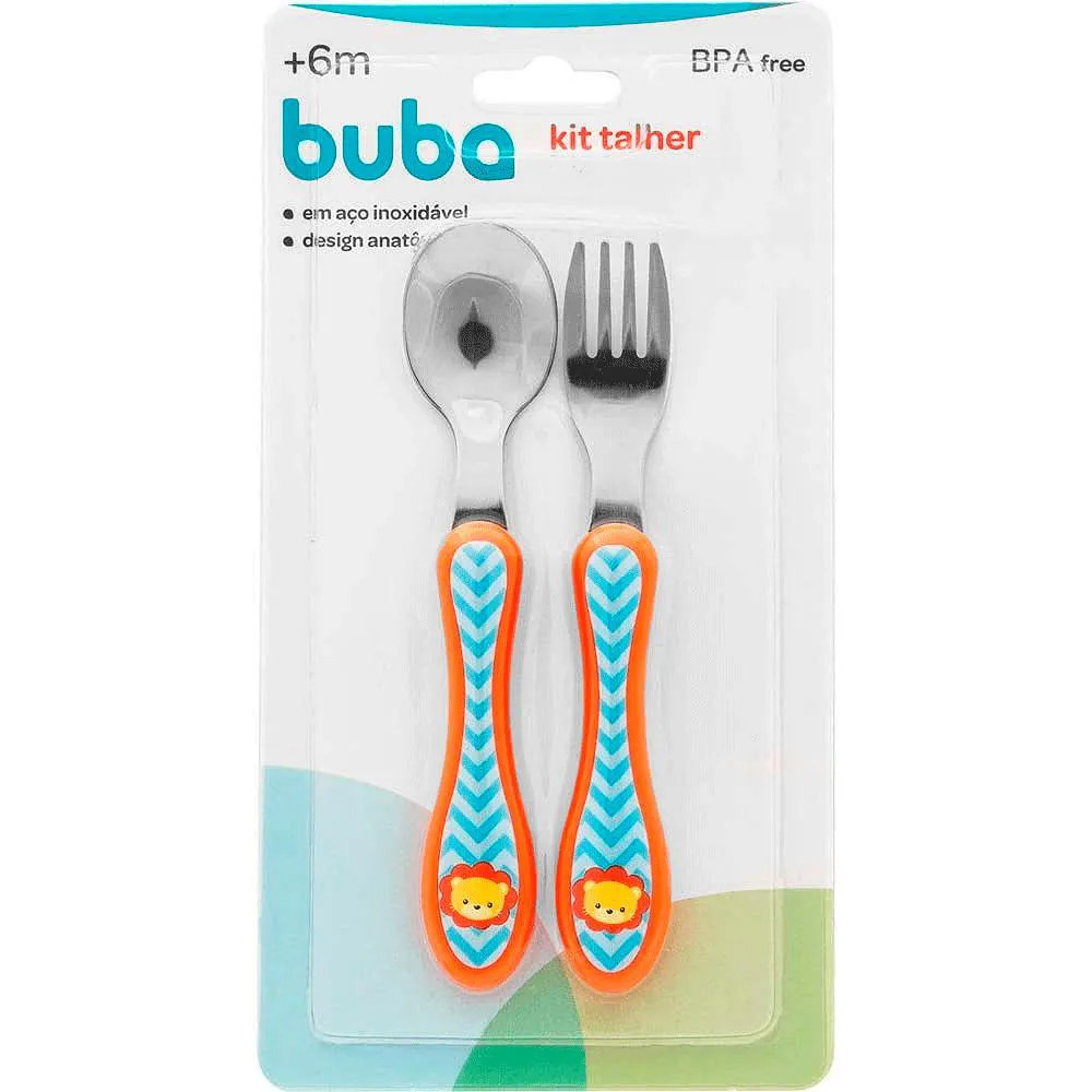 Kit Talheres Infantis – Colher e Garfo em Aço Inox | Buba O Kit de Talheres da Buba foi desenvolvido para tornar a hora da papinha mais prática e divertida! Composto por uma colher e um garfo com cores alegres e estampas que chamam a atenção dos pequenos, é perfeito para estimular a alimentação de forma lúdica e segura. Os talheres têm o tamanho ideal para as mãozinhas das crianças, com pontas arredondadas e estrutura em aço inoxidável, garantindo mais resistência, higiene e durabilidade. Diferenciais: Design ergonômico para facilitar o uso por crianças Pontas arredondadas, seguras para o uso infantil Aço inoxidável: mais higiênico e durável Cores e estampas divertidas Conteúdo da embalagem: 1 colher 1 garfo Ideal para acompanhar o desenvolvimento da criança nas diferentes fases da alimentação.