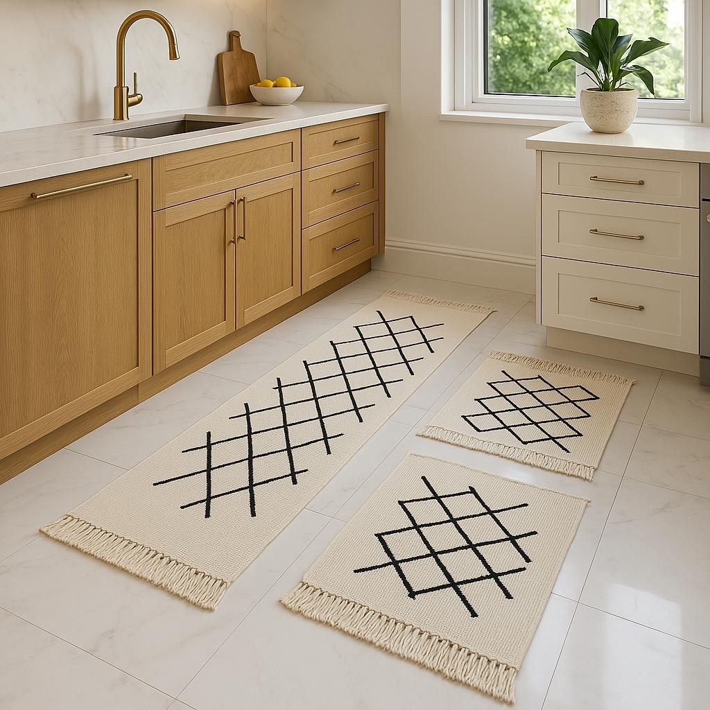 Kit tapete cozinha 100% algodão com passadeira geometric 3pç