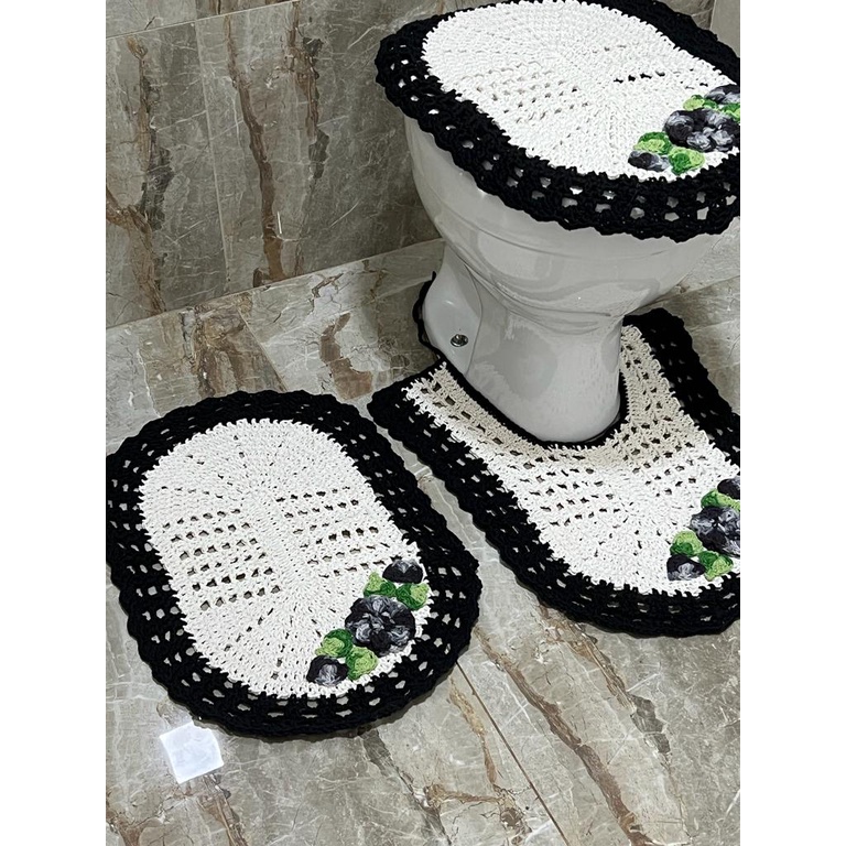 Kit Tapete Em Crochê Para Banheiro 3 Peças - Arte Crochê 100% Algodão