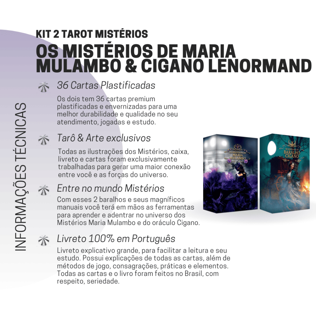 Kit Tarot Lenormand Cigano e Baralho Maria Mulambo 36 Cartas Plastificadas c/ Manual para Iniciantes