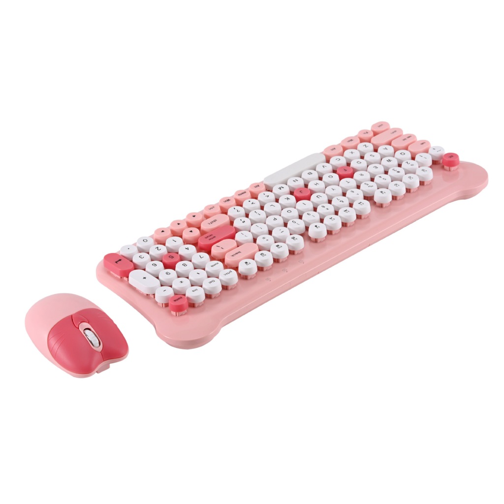 kit Teclado e Mouse Colorido Bonito Desenho animado Conexão Sem Fio de 2,4 Ghz para Laptop à prova d'água