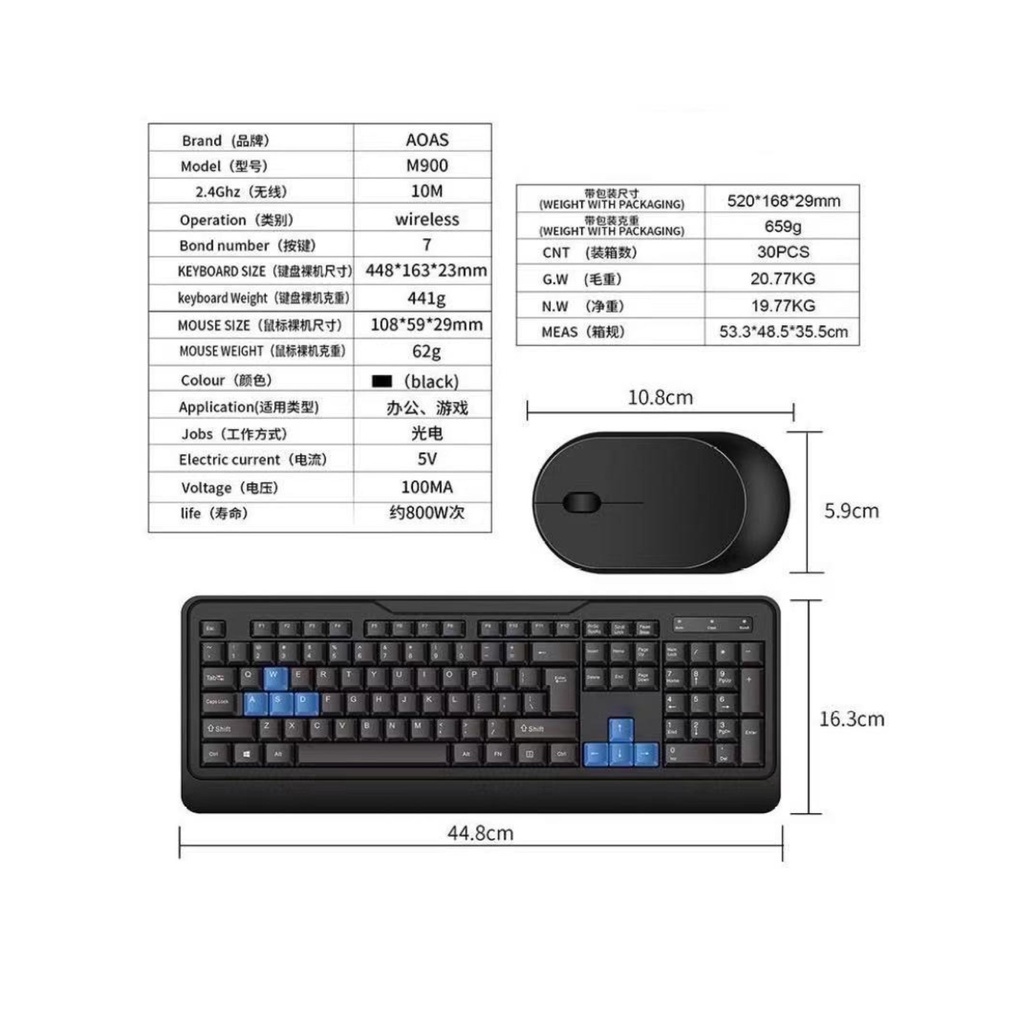 ***Kit Teclado e Mouse Sem Fio*** Design moderno e confortável. Ideal para o uso domestico ou no seu escritório! -Sensor de nova geração; -Design Impermeável e Antiderrapante; -2.4Ghz Sinal 10m transmissão sem perdas; -USB suporta interfaces mais diferentes (3.0 2.0 1.1); -Compatível com mais Sistemas. -Colocar uma pilha AAA Na Caixa: 1 Teclado (com ç ) 1 Mouse 1 Conecto USB 1 Película protetora contra poeira para teclado Cor: Preto Observação: para usar o kit keycap sem fio, primeiro conecte o receptor ao computador e, em seguida, coloque a bateria no teclado e no mouse. O método de inicialização após entrar em hibernação é: pressione os botões esquerdo e direito ao mesmo tempo. Teclado: pilha AAA Mouse: pilha AA Dimensões: *Teclado: Comprimento 45cm Largura 16,5cm *Mouse: Comprimento 11cm Largura 5.5cm
