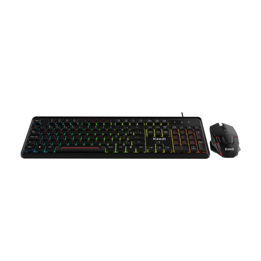 KIT TECLADO E MOUSE KEEDI-TEC813 - Teclado de membrana de alta qualidade - Iluminação LED com 3 cores simultâneas, proporcionando uma estética vibrante e personalizável - Teclas com espaçamento de 7mm, ideal para uma jogabilidade mais confortável e precisa - Iluminação retroiluminada ao redor das teclas, perfeito para jogar até as altas horas da noite - Design moderno e ergonômico, desenvolvido para oferecer a melhor experiência aos gamers exigentes ESPECIFICAÇÕES: Marca: KEEDI Modelo: KEEDI-TEC813 Material: ABS de alta resistência Tipo: Teclado de Membrana Toque suave e teclas silenciosas para uma experiência sem ruídos Teclas multimídia para fácil acesso às funções do sistema Conexão USB 2.0, garantindo transmissão rápida de comandos Teclado com layout brasileiro (ABNT2) Compatível com Windows/MAC/Linux Peso ideal para maior estabilidade durante o uso Compatível com versões Windows 2000/XP/2003/Vista/7/8/10, Linux e MAC Teclas finas com impressão a laser, oferecendo maior durabilidade Sistema de drenagem de líquidos, protegendo seu teclado de danos causados por acidentes com líquidos Aproveite o desempenho superior e a estética diferenciada do KEEDI-TEC813, a escolha ideal para quem busca qualidade e estilo no ambiente gamer.