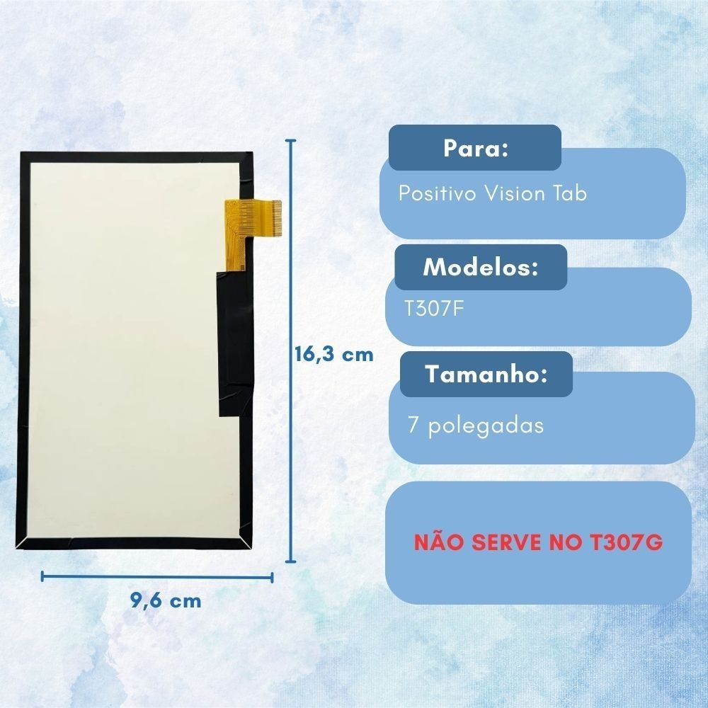 Kit Tela Display lcd imagem touch vidro toque Positivo Vision Tab 7 T307F T307 F DISPLAY RESPONSÁVEL PELA IMAGEM TOUCH RESPONSÁVEL PELO TOQUE NA TELA NÃO SERVE NO MODELO T307G