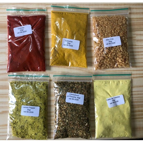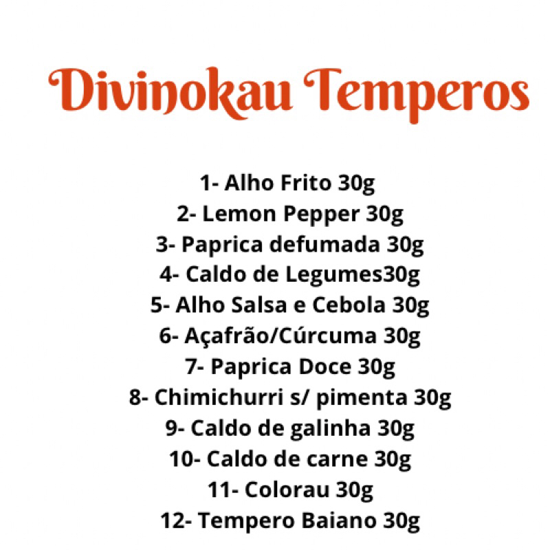 | KIT TEMPEROS E CONDIMENTOS 12 UNIDADES 30G CADA este produto | R$ 18,90 | 30% | 4.9/5 | 123 |