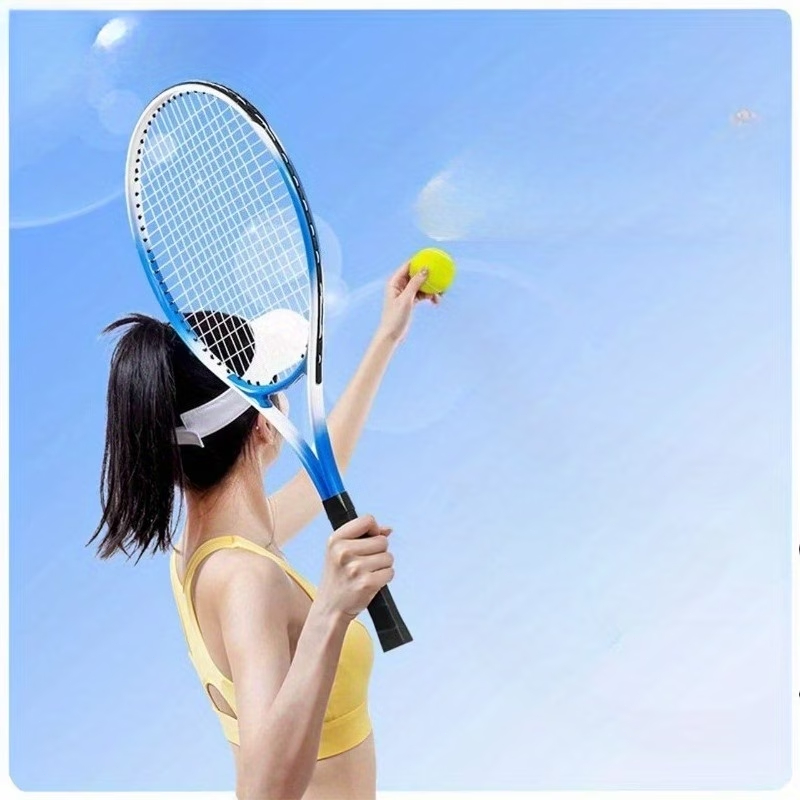 Cor Azul azul Comprimento 49 cm Obras de trabalho Alumínio, Nylon, Cloreto de Polivinilo Peso do peso 152 gramas Acessórios incluídos 2 Raquetes de Tênis, Um Tênis E Uma Garrafa de Água