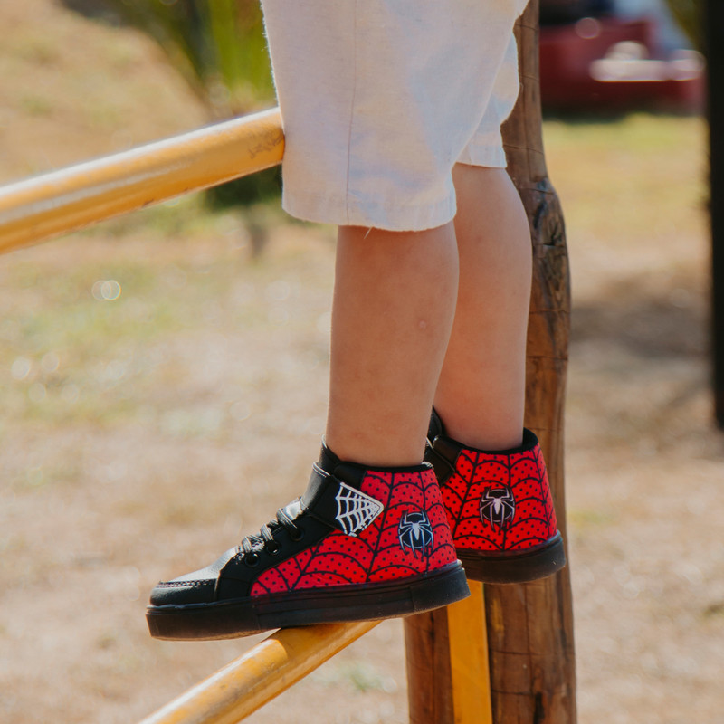 Kit Tenis Botinha de Led Meninos Cano Alto Aranha Confortavel Divertido Ajuste Facil + Chinelo