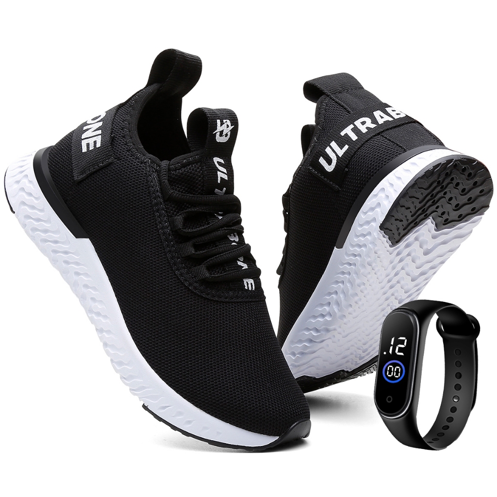 DESCRIÇÃO: Sejam bem vindos! Kit Tenis Ultrabone + Relógio Material: Nylon Estilo: Esportivo Modelo: Cadarços de amarrar - Fitness Solado: Borracha micro expandida de alto desempenho, antiderrapante, extra leve e flexível Forro: Têxtil almofadado, antitranspirante e antibacteriano Palmilha: EVA comfort com alta absorção de impacto CARACTERÍSTICAS DO PRODUTO: Este calçado é um Tênis Unissex. Fácil de calçar e com cadarços para se ajustar melhor pé e também para proporcionar a possibilidade de mais praticidade. Muito macio, confortável e resistente, pois contém em sua composição materiais de ótima qualidade, flexíveis e com excelente maciez para garantirem mais conforto, durabilidade e resistência. Dispõe-se também de detalhes como o recorte, dupla cor e textura dos materiais que a compõe para proporcionarem, assim, um visual mais sofisticado e fino ao calçado. É ideal para o dia a dia, trabalho, passeios, eventos informais, esportes em geral. Também é recomendado para superfícies como asfalto, concreto e cerâmica. Temos dele em várias cores. TAMANHOS DA PALMILHA: 34 - 23,6cm 35 - 24,0cm 36 - 24,7cm 37 - 25,3cm 38 - 26,0cm 39 - 26,7cm Qualquer dúvida em relação ao produto nos contate pelo campo de perguntas! BOAS COMPRAS!