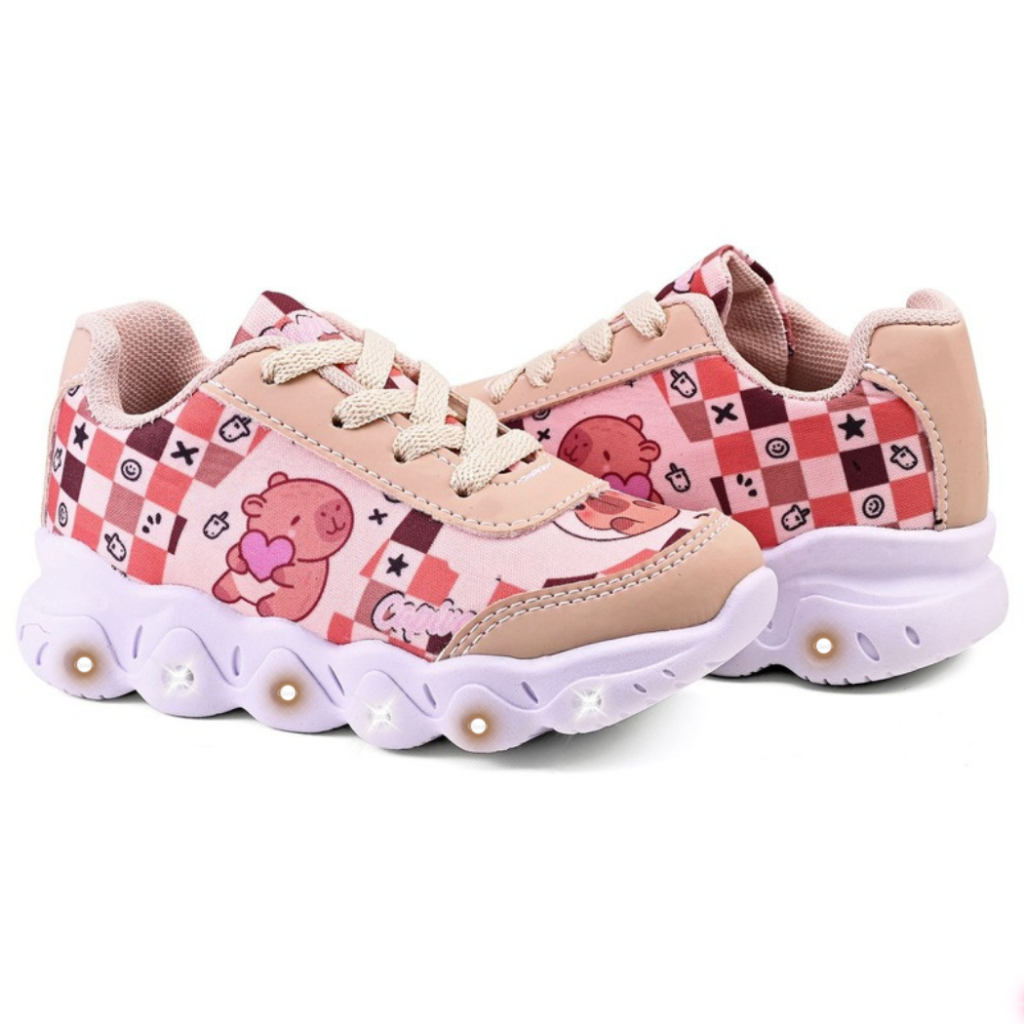 Kit Tênis Infantil Menina Capivara Com Led + Chinelo Infantil