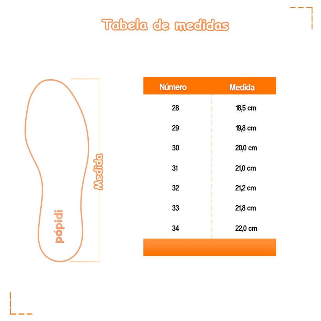 Kit Tênis PopStar Cano Alto e Óculos de Sol com Capinha Infantil Descrição do Óculos de Sol: Óculos Infantil Pópidi, composto por lentes polarizadas com proteção UV400, escolha segura e estilosa para curtir os dias ensolarados. Benefícios: As lentes polarizadas são feitas para proteger os olhos dos raios de luz que são refletidos nas superfícies. Assim, reduzem o excesso de luz que atinge os olhos, causando ofuscamento, cansaço visual e dores de cabeça. Os óculos de sol são essenciais para proteger a visão nos dias de sol e, inclusive em dias nublados, porque evitam o contato direto com os raios UV, evitando o desenvolvimento de doenças oculares, além de conferir maior conforto visual. Descrição do Produto Composição da armação: Polipropileno Estilo: Infantil Material das lentes: Acrílico Lentes polarizadas com proteção UV400 Altura da lente: 4,0 cm Largura da lente: 4,2 cm Medida entre as lentes: 2,2 cm Medida frontal: 13,0 cm Comprimento das hastes: 13,0 cm Capinha: Embalagem: 1 Estojo de proteção para óculos Composição: Polipropileno, forro de material flocado Conservação: O uso destina-se para guardar e proteger seus óculos, portanto, não é resistente a ações mecânicas como torcer e realizar limpezas com materiais diferentes dos recomendados. Descrição do Tênis Popstar Cano Alto: POP é ter conforto e diversão sem perder o estilo, POP é ser um clássico passado de geração pra geração, POP é nunca cair de moda. Esse é o nosso POP o modelo POPSTAR, agora em cano alto! Cabedal em lona - Sola antiderrapante Tipo de Produto: Tênis Cano Alto Ocasião/Estilo: Casual Material cabedal: Têxtil Material Interno: Têxtil Material da Sola: PVC Virgem Nós da Pópidi cuidamos com carinho da relação pré e pós-venda, afinal a satisfação de nossos clientes é muito importante para nós! Atendimento: Segunda à sexta: 07:00 às 18:00 Sábado: 09:00 às 13:00 TABELA DE MEDIDA 28 ----------- 18,5cm 29 ----------- 19,8cm 30 ----------- 20,0cm 31 ----------- 21,0cm 32 ----------- 21,2cm 33 ----------- 21,8cm 34 ----------- 22,0cm COMO MEDIR Coloque o pé em cima de uma folha de papel e risque em volta dele com um lápis ou caneta. Meça o comprimento do topo até a base do contorno e adicione 0,5 cm de folga. LIMPEZA E CONSERVAÇÃO Evite usar substâncias abrasivas como álcool, detergentes ou solventes nos calçados. Nunca os mergulhe na água, os deixe de molho ou lave na máquina. A secagem dos produtos deve ser feita à temperatura ambiente e na sombra, nunca no sol ou em máquinas. SOBRE A EMPRESA Visão Estar em constante expansão e inovação, de uma forma consistente e arrojada. Missão Proporcionar o bem estar dos nossos clientes, satisfazendo-os em um ambiente agradável e cortês com produtos a preços justos e de qualidade. Valores Respeito, Dedicação, Conexão e Atitude. Boas compras e volte sempre!!!
