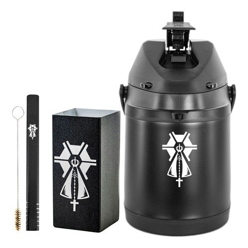 Kit Tereré Copo Bomba Garrafa Térmica Preto 2.5l - Agro