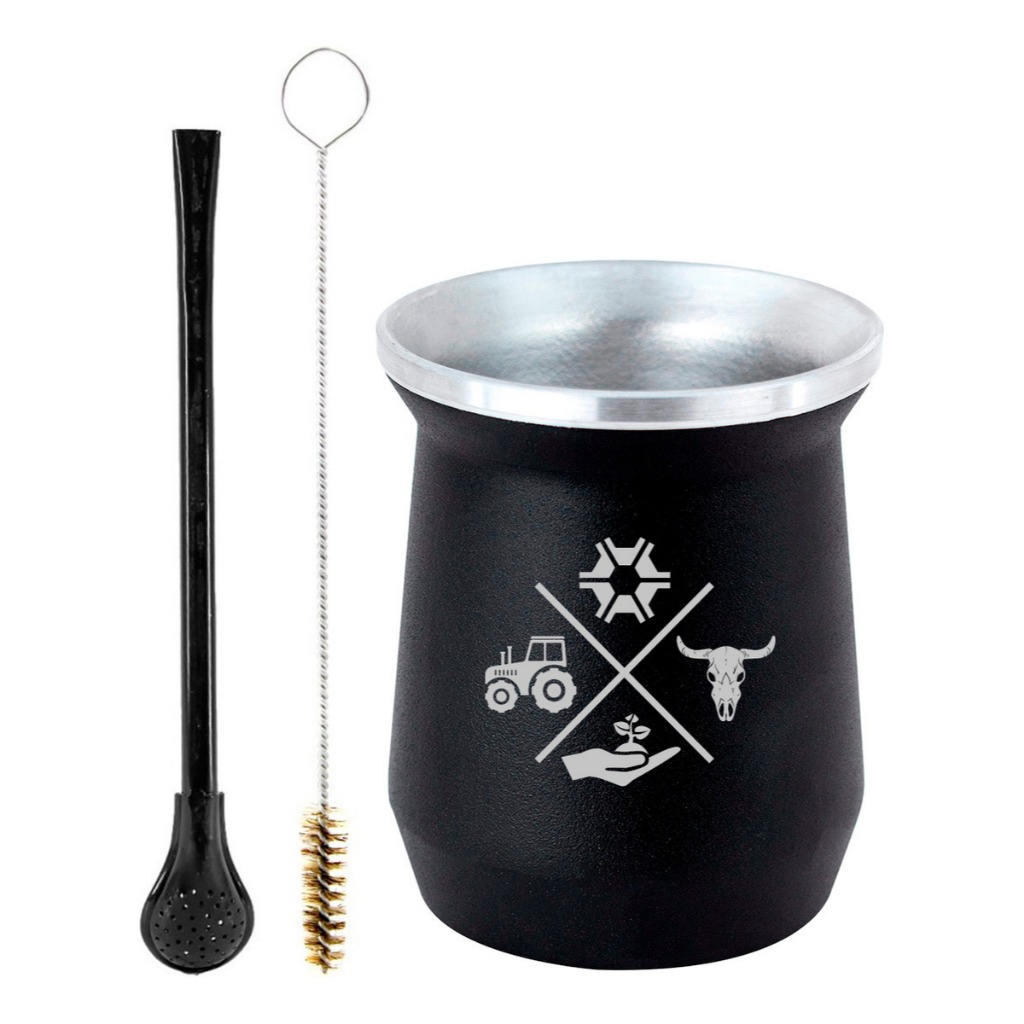 Acompanha: 1- Cuia térmica de alumínio Preta 300ml 1- Bomba Tereré Preta (ESCOLHA MODELO) 1- Escova de limpeza Personalização Copo e Bomba: Made in Roça Cuia: 300ml Material alumínio Pintura de alta resistência preta Parede dupla de isolamento térmico Bomba: 19cm Material aço Não entope Garantia de fábrica: 90 dias