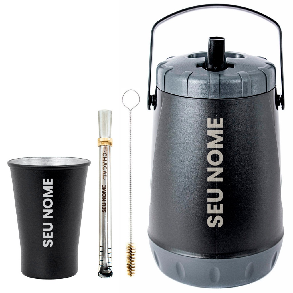 Kit Tereré Garrafa 2.5L Térmica Copo 280ML Bomba Inox - Personalize Seu Nome