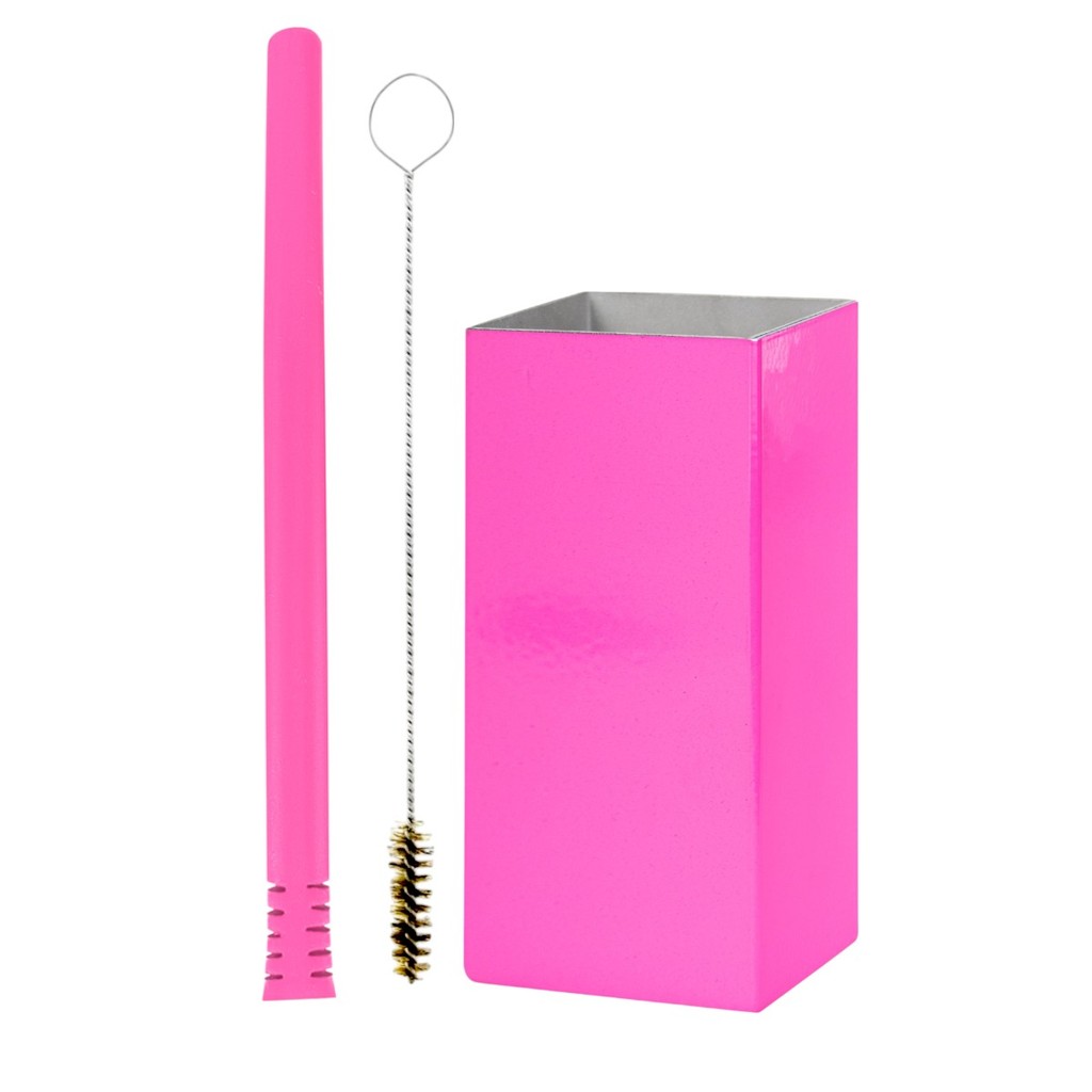 Kit Terere Inox Copo Cuia Quadrado Bomba Tereré Inox Filete + Escova de Limpeza Cores