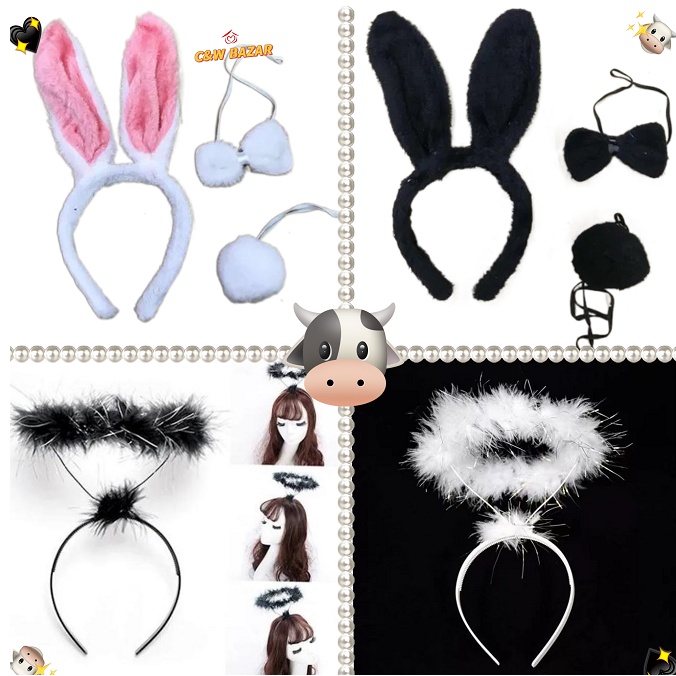 Kit Tiara Arco De Cabelo Com Orelhas De Coelho E De Anjo Fantasia Cosplay Para Carnaval E Festa