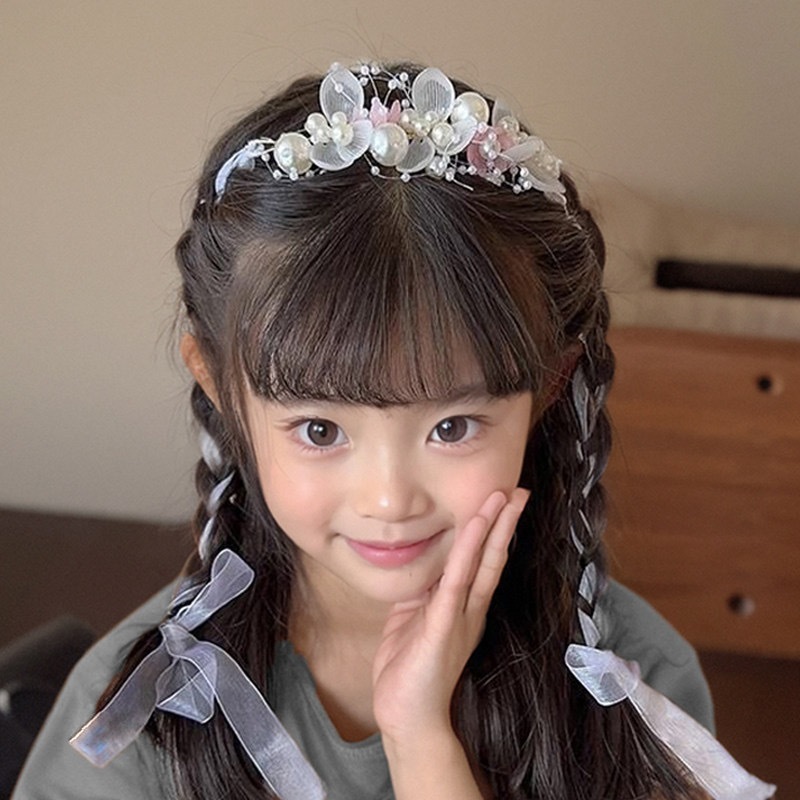 Kit Tiaras Brancas Infantil Luxo com Pérolas e Flores – Acessório para Princesa, Festa e Casamento